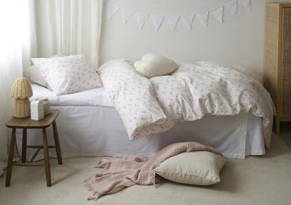 Bäddset bestående av ett örngott och ett påslakan. Bäddsetet har ett tryckt mönster och är tillverkat i mjuk och skön bomullskvalitet.