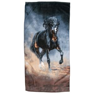 Badlakan i skön bomullsvelour med tryckt mönster framtill och vit öglefrotté på baksidan. Hängare på kortsidan och på långsidan.