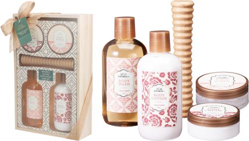 Setet levereras i en stilren träfärgad låda med ett vackert band – redo att ges bort som present eller att njuta av själv.