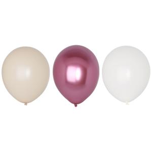 Skapa en elegant och trendig dekoration med våra latexballonger i 6-pack. Setet innehåller 2 vita, 2 rosa metallic och 2 beige ballonger – perfekta för baby shower, födelsedag, dop eller bröllop.