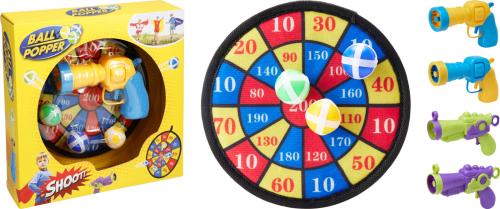 Denna darttavla med kardborrebollar och bollpistol är ett klassiskt och underhållande bollspel som passar perfekt för barn. Bollarna fäster enkelt på tavlan med hjälp av kardborreband och skjuts iväg med den medföljande bollskjutarpistolen.