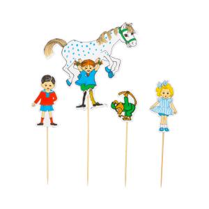 Cake Picks i 4-pack med "Pippi Långstrump"-motiv att dekorera tårtan med.