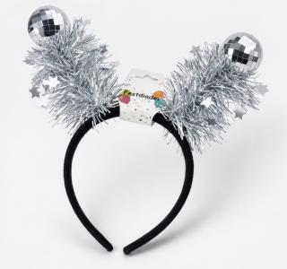 Detta roliga diadem pryds av små silverdiscokulor som reflekterar ljuset och skapar en festlig stämning. Perfekt till maskerader, temafester, nyårsfirande eller när du vill lägga till extra glamour till din outfit.