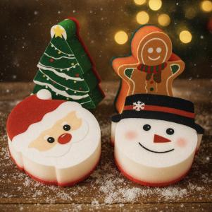 Söt disksvamp med julmotiv – välj mellan julgran, pepparkaka, jultomte eller snögubbe. Gör diskningen både roligare och mer dekorativ.