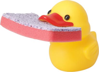 Rolig disksvamphållare i plast formad som en anka. Levereras med 1 disksvamp. Praktisk och lekfull för köket.
