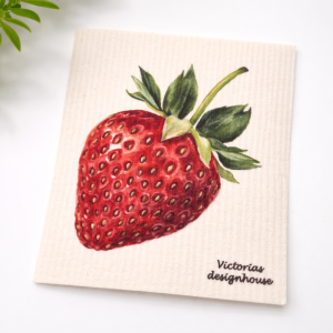 Med sina smidiga mått är den enkel att använda och torkar snabbt mellan användningarna. Jordgubbsmotivet ger dessutom en fräsch och somrig känsla i köket.