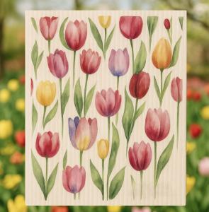 Gör vårstädningen roligare med en söt och hållbar disktrasa med tulpanmotiv!