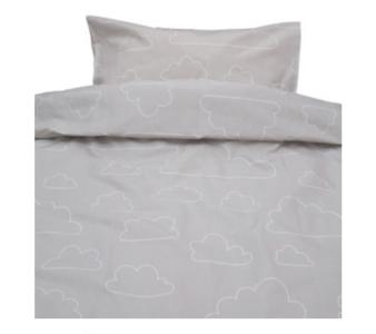 Underbart bäddset i 100% ekologisk bomull med motiv av moln. Mått: påslakan 150x210cm och örngott 50x60cm.