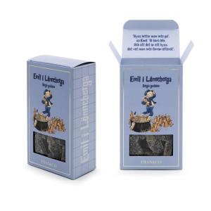 Asken pryds av charmigt Emil i Lönneberga-motiv, vilket gör godiset extra dekorativt och uppskattat.