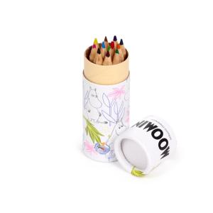 Färglägg med Mumin! Set med 12 färgpennor i praktiskt rör med sött Muminmotiv.