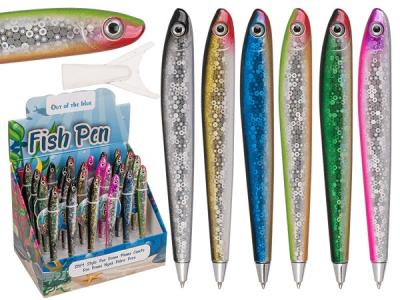 Bläckpenna med rolig fiskdesign, ca 11,5 cm lång. Finns i 6 olika färger som skickas slumpvis.
