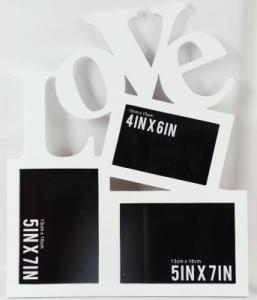 Fotoram med plats för 3 st bilder, 13x18cm, 10x15 cm, 13x18cm( liggande). Mått på hela ca 35x42 cm.