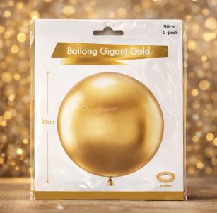 Gigantisk guldfärgad ballong på 90 cm – perfekt för fest, bröllop eller födelsedag. Tillverkad av latex och levereras med snöre.