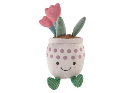 Supermjukt gosedjur i form av en söt tulpan i kruka – en charmig och kramvänlig kompis med leende ansikte.