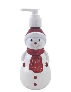 Handtvål i söt plastförpackning i form utav en snögubbe. Förpackningen innehåller 320ml tranbärs doftande handtvål.