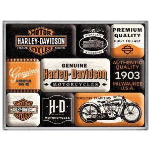 Färgglatt retroset med 9st Harley Davidson-magneter – perfekta för kylskåpet! Extra starka magneter håller kort, bilder och lappar på plats. Perfekt present till motorcykelentusiasten.