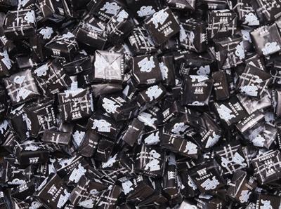 Glukossirap, socker, sötad kondenserad mjölk, vegetabiliskt fett, lakritspulver, arom, vanilj, salt, färgämnen: (E153). Kan innehålla spår av hasselnötter, gluten och soja.