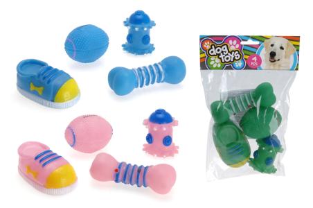 Hundleksaker för den lilla hunden i 4-pack. OBS glöm ej välja färg.