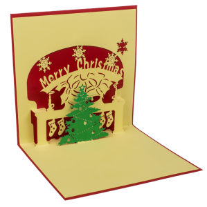 Julkort med utfällbar siluette (Julgran vid öppen spis)