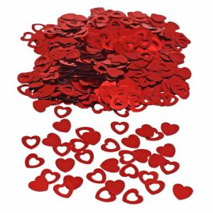 Röd konfetti i form av små hjärtan – perfekt som dekoration på festen eller vid romantiska tillfällen.