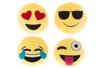 Runda coola smileykuddar som finns i fyra olika varianter. Mått ca 30cm. 100% polyester. Endast handtvätt. CE märkt.