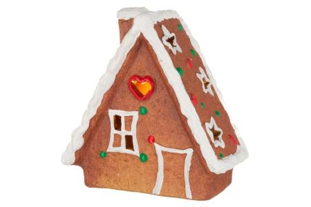 Denna keramiska lykta i form av ett klassiskt pepparkakshus skapar en stämningsfull känsla i hemmet under julen.