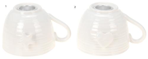 Söt ljuslykta för kronljus i form av en upp och nedvänd kaffekopp. Finns i två olika utföranden alternativ nr1: med en stjärna på koppen och alternativ nr 2: med ett hjärta på koppen. Lyktan är ca 10x 7x 6cm. OBS glöm ej välja utförande.