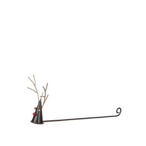 Ljussläckare med renhorn i hamrad plåt. Mått: 25 cm.