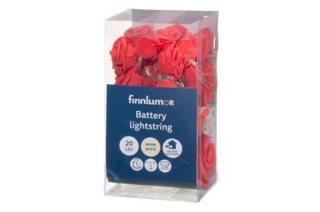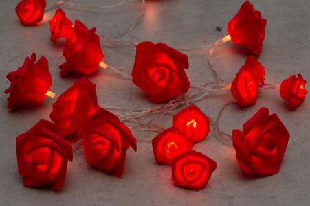 Ljusslingan har 20 LED-lampor med varmt vitt sken, där varje lampa är dekorerad med en realistisk röd ros i EVA-material.