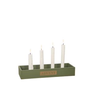 Skapa en varm och traditionell julstämning med denna vackra adventsljusstake i grönmålat trä, prydd med ordet "Advent" i elegant guldfärg.