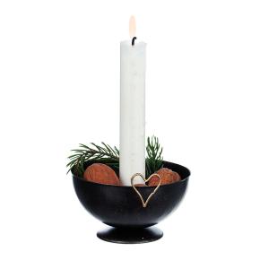 Ljusstake i hamrad plåt med plats för ett kronljus. Mått: 10x7,5cm. (dekoration och ljus medföljer ej)