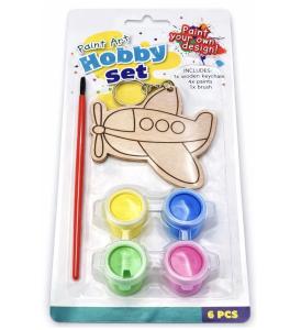 Setet innehåller en flygplansformad nyckelring i trä som du själv kan dekorera med de 4 medföljande färgerna. Med hjälp av den inkluderade penseln kan du enkelt skapa ett färgglatt flygplan och designa din nyckelring precis som du vill.