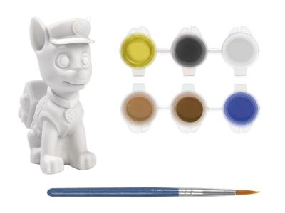 Pysselset med en omålad Chase från Paw Patrol, pensel och 6 färger. Främjar kreativitet och finmotorik.