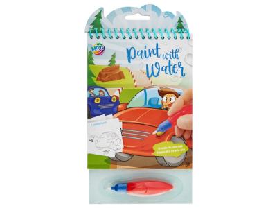 Målarbok som du endast behöver vatten till. Fyll medföljade penna med vatten och måla på bilderna för att färgen ska komma fram. När vattnet har torkat så försvinner färgen och du kan åter igen måla på bilderna.