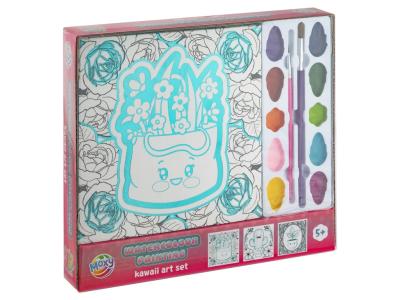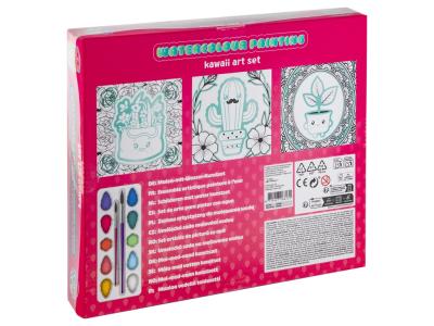 Målarset med canvas tavlor med motiv av söta blommor i krukor. Setet innehåller vattenfärger i 10 färger samt 2 penslar.