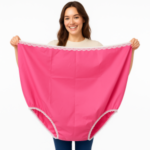 Med sina imponerande mått på 102 x 80 cm är denna "Mega Granny Underwear" den perfekta gåvan till möhippan, svensexan, födelsedagsfesten eller som skämtpresent till någon med glimten i ögat.