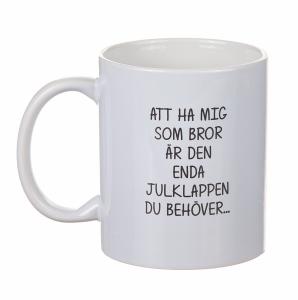 Rolig mugg i porslin med texten "Att ha mig som bror är den enda julklappen du behöver...". Perfekt julklapp från en stolt bror till sitt syskon – med glimten i ögat.