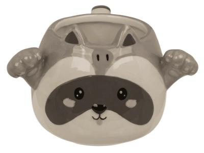 Den charmiga tvättbjörndesignen med små öron, tassar och vänligt uttryck gör muggen både lekfull och dekorativ – perfekt för både barn och vuxna.