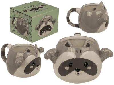 Söt och kramgo tvättbjörn-mugg i dolomit. Rymmer 450 ml.