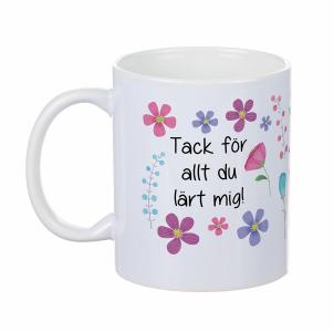 Vacker porslinsmugg med blommigt motiv och texten "Tack för allt du lärt mig!". En perfekt present till lärare, mentor eller någon som gjort skillnad.