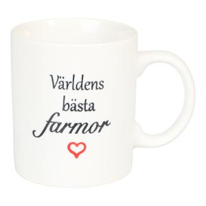 Ge bort en kärleksfull present till någon som betyder allt! Denna fina keramikkopp med texten “Världens bästa farmor” rymmer 350 ml och sprider glädje vid varje kaffestund.