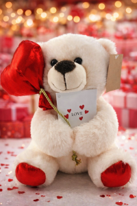 Söt vit nallebjörn som håller ett rött hjärta – en perfekt present för Alla hjärtans dag, födelsedag eller som en kärleksfull överraskning. Mjuk, kramvänlig och fylld med kärlek.
