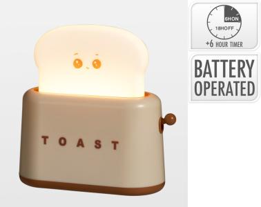 Söt nattlampa för barnrummet i form av en brödrost med brödskiva inuti. Timerfunktion 6 timmar på / 18 timmar av.
