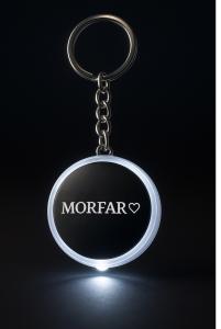 Snygg och praktisk nyckelring med texten "MORFAR♥", utrustad med lampa.