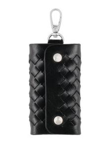 Nyckelfodral i flätat konstläder, på insidan finns metallklämmor för flera nycklar. Fodralet kan fästas i en bältesögla.