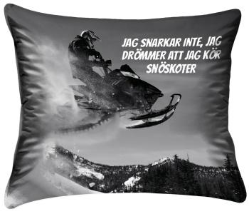 Coolt örngott med motiv av en snöskoter och texten "Jag snarkar inte, jag drömmer att jag kör snöskoter" Mått: 50 x 60 cm. Material: 100% bomull. Maskintvätt 60°C. Varumärke: Oscar Löfstrand.