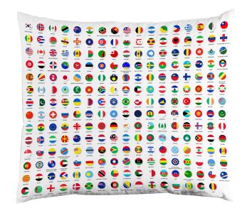 Örngott med motiv av världens flaggor. Mått: 50 x 60 cm. Material: 100% bomull. Maskintvätt 60°C. Varumärke: Oscar Löfstrand.