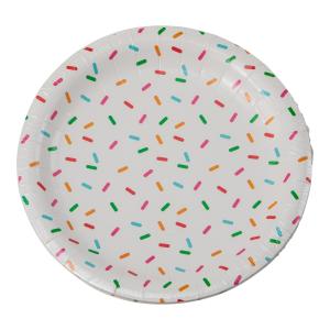 Papperstallrikar i 6-pack med motiv av strössel. Mått: D 23cm.