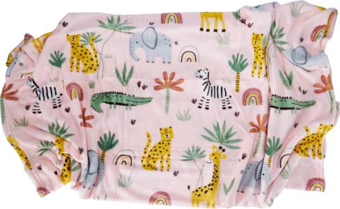 Mysig och mjuk pläd med djungeldjurmotiv i rosa färg. Perfekt för barnrummet, som filt i soffan eller som present.