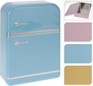 Härlig plåtburk i retrostil, med ett utseende av en gammal kyl. Mått ca 17X 25X 7cm. Finns i tre stycken olika färger.